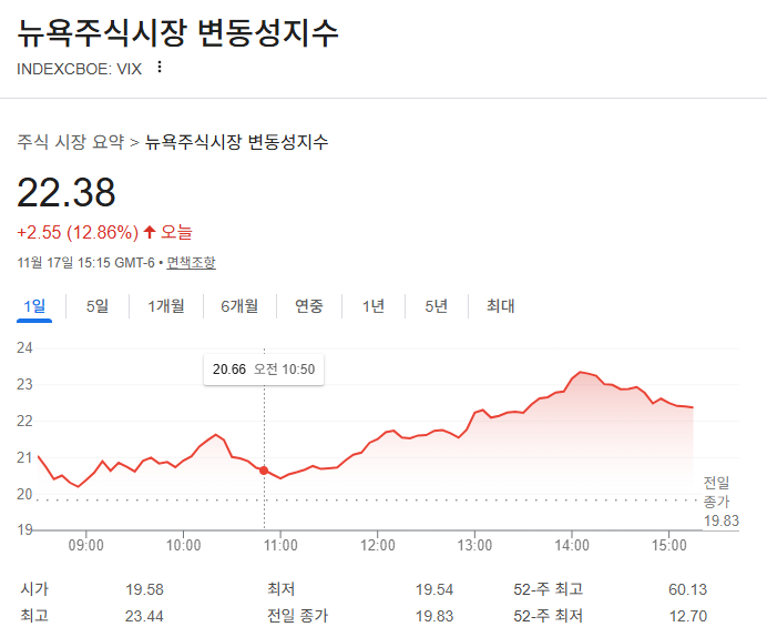 출처: Google Finance – VIX (CBOE Volatility Index)