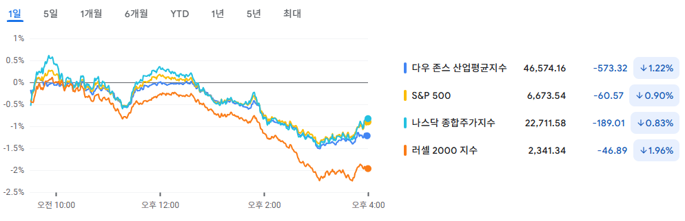 – 해석: 고평가 부담이 시장 심리를 짓누르며 기술주 약세 중심에 섬
