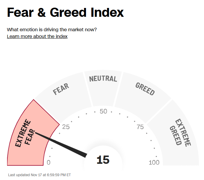 전날 미국 시장은 전반적으로 심리 위축이 두드러진 하루였습니다. 공포·탐욕지수는 ‘공포(Fear)’ 단계로 내려앉았고, 변동성 지수(VIX)도 상승하며 시장 내부의 긴장감을 그대로 보여줬습니다. 지수 변동폭은 크지 않았지만 분위기는 확실히 “움직이면 손해”에 가까웠습니다.